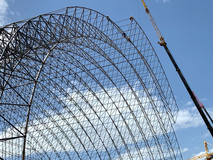 (2)网架加工前应对现场尺寸进行复测,确认无误后方可进行加工、安装;网架制作、运输、安装应遵守《空间网格结构技术规程》JGJ7-2010、《钢网架南康螺栓球节点》JG/T 10-2009、《钢网架南康螺栓球节点用高强度螺栓》 GB/T 16939-2016、《南康钢结构南康工程南康施工规范》 GB50755-2012、《南康钢结构南康工程南康施工质量验收标准》 GB50205-2020。